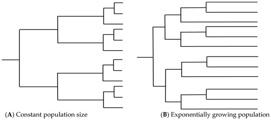 - Hein, J.; Schierup, M.; Wiuf, C. Gene Genealogies, Variation and Evolution: A Primer in Coalescent Theory; Oxford University Press: Oxford, UK; New York, NY, USA, 2005. [Google Scholar]