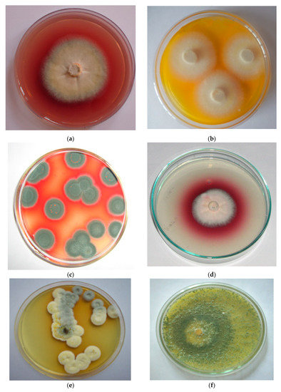 - Visagie, C.M.; Houbraken, J.; Frisvad, J.C.; Hong, S.B.; Klaassen, C.H.W.; Perrone, G.; Seifert, K.A.; Varga, J.; Yaguchi, T.; Samson, R.A. Identification and nomenclature of the genus Penicillium. Stud. Mycol. 2014, 78, 343–371. [Google Scholar] [CrossRef]