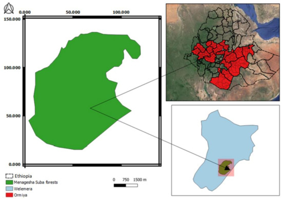 Location map of the study area, Menagesha Suba, central Showa, Oromia National Regional State, Ethiopia.