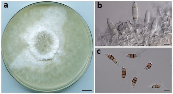 - Jeewon, R.; Liew, E.C.Y.; Simpson, J.A.; Hodgkiss, I.J.; Hyde, K.D. Phylogenetic significance of morphological characters in the taxonomy of Pestalotiopsis species. Mol. Phylogenet. Evol. 2003, 27, 372–383. [Google Scholar] [CrossRef]