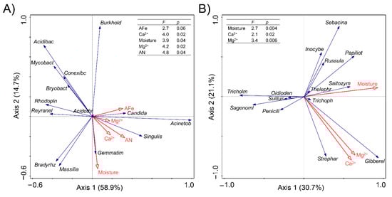 3.4. Both Bacterial and Fungal Community Structure Showed Significant Changes