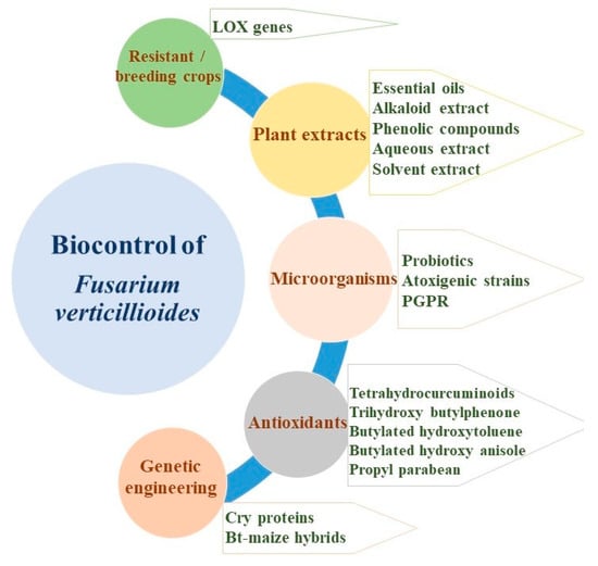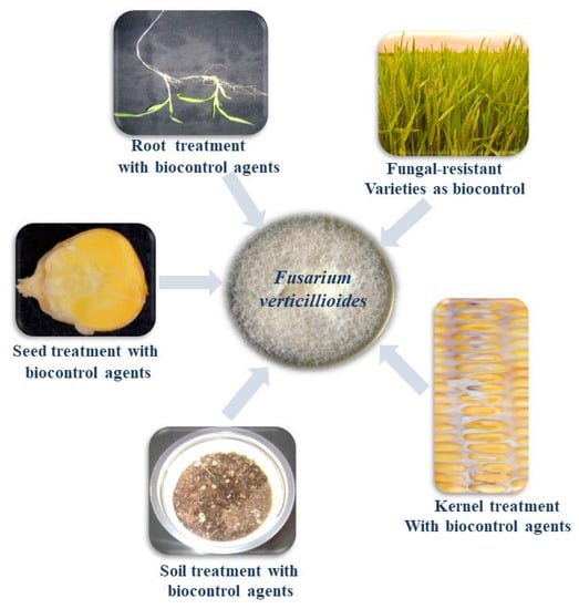 N, D.; Achar, P.N.; Sreenivasa, M.Y. Current Perspectives of Biocontrol Agents for Management of Fusarium verticillioides and Its Fumonisin in Cereals—A Review. J. Fungi 2021, 7, 776. https://doi.org/10.3390/jof7090776