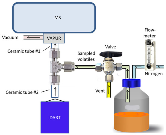 Cartoon representation of the modified DART–MS instrument constructed to allow convenient sampling of culture bottles.