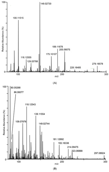 Data were analyzed using the QualBrowser component of the Xcalibur MS program supplied by the MS vendor. Empirical formulae for distinctive ions were suggested by use of the Compound Discover 3.2 program supplied by the MS vendor.