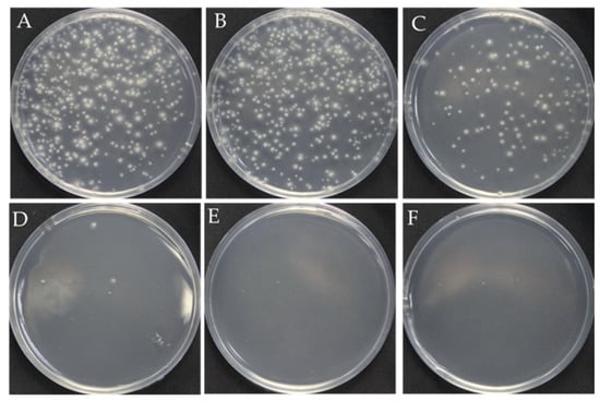 To determine the effect of the RNP concentration on the targeting efficiency, RNPs at a range of concentrations (0, 90, 170, 250, 300, and 400 nM) were transformed into F. filiformis protoplasts (107 cells mL−1) and an addition of 0.01% Triton X-100. No transformants were obtained without RNPs or with RNPs at concentrations ≤ 170 nM. When the RNP concentration was 300 nM, the resulting number of CFUs was at a maximum (Table 4 and Figure 4). Therefore, 300 nM is the optimal RNP concentration (Figure 5).