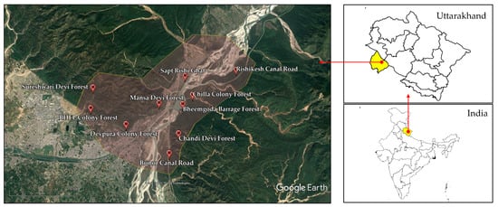 For the present study, samples of two oyster mushroom species i.e., P. ostreatus and P. djamor were obtained from ten (10) locations around the Chilla Forest Range of Rajaji National Park in Haridwar city, Uttarakhand, India. Table 1 and Figure 1 show the list and map of sampling locations for the current study, respectively. The elevation of sampling locations ranged from 286–515 m. Moreover, the perimeter and total area of the sampling area were 42 km and 100 km2, respectively. The area receives an average annual rainfall of 2136.7 mm with August as the wettest month. The average temperature and humidity of the area are recorded as 23 °C and 68%, respectively [21]. The monsoon season in the region begins in July and lasts up to September. During this period, a wide variety of wild mushrooms appear in the forest areas, including Pleurotus spp. The sampling locations are easily accessible to the local communities and do not need any special permission from the forest authorities. Therefore, wild mushrooms are commonly collected and consumed by the local people. The mushroom samples were collected from June 2021 to July 2022 following standard field sampling methods [22]. The mushroom bodies were carefully picked and immediately transported to the laboratory for further analysis. However, the number of samples collected (P. ostreatus, n = 49; P. djamor, n = 39) for each species varied due to their availability. Herein, the Pleurotus spp. were morphologically identified using the field guide of Kumari et al. [23] and several online databases such as https://www.mushroom.world/ and http://www.mycokey.com/ (accessed on 1 September 2022).