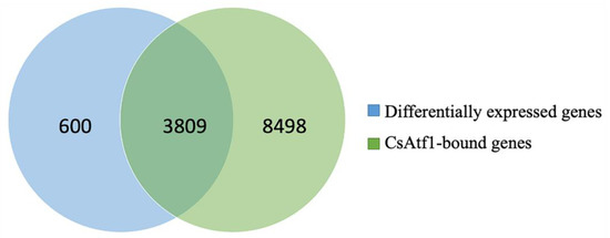 Venn diagram of significantly differentially expressed genes in the ΔCsAtf1 mutant and genes bound directly by the transcription factor CsAtf1.