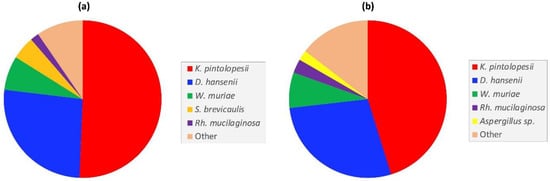 - Suzuki, M.; Prasad, G.S.; Kurtzman, C.P. Debaryomyces Lodder & Kreger-van Rij (1952). In The Yeasts: A Taxonomic Study, 5th ed.; Kurtzman, C.P., Fell, J.W., Boekhout, T., Eds.; Elsevier: Amsterdam, The Netherlands, 2011; Volume 2, pp. 361–372. [Google Scholar]