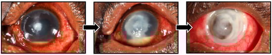 - Sharma, N.; Sahay, P.; Maharana, P.K.; Singhal, D.; Saluja, G.; Bandivadekar, P.; Chako, J.; Agarwal, T.; Sinha, R.; Titiyal, J.S.; et al. Management algorithm for fungal keratitis: The TST (Topical, Systemic, and Targeted Therapy) Protocol. Cornea 2019, 38, 141–145. [Google Scholar] [CrossRef]