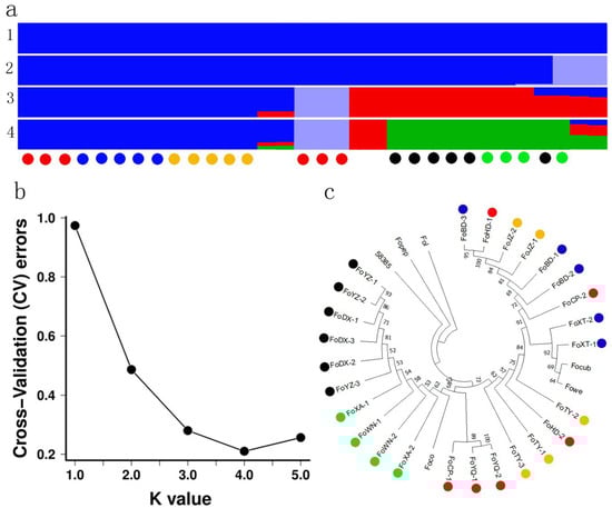 Ling, J.; Dong, X.; Ping, X.; Li, Y.; Yang, Y.; Zhao, J.; Lu, X.; Xie, B.; Mao, Z. Genetic Diversity and Population Structure of Fusarium oxysporum f. sp. conglutinans Race 1 in Northern China Samples. J. Fungi 2022, 8, 1089. https://doi.org/10.3390/jof8101089