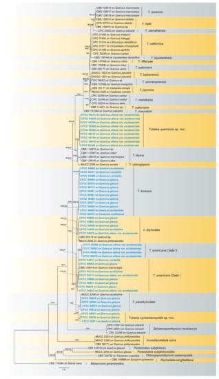 | T. suttoniana | Netherlands | Quercus sp. | CBS 114911 | MG591916 | MG592105 | MG592197 |