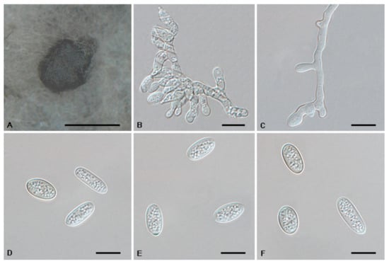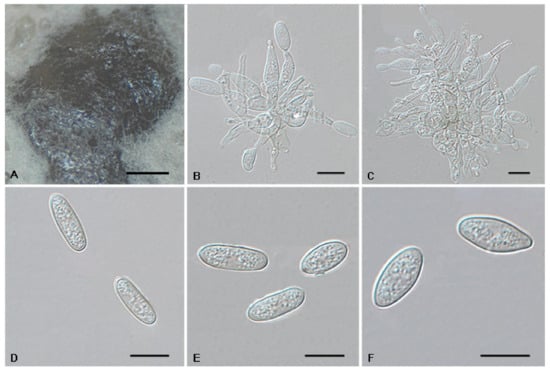 - Zhang, Z.; Mu, T.; Liu, S.; Liu, R.; Zhang, X.; Xia, J. Morphological and phylogenetic analyses reveal a new genus and two new species of Tubakiaceae from China. MycoKeys 2021, 84, 185. [Google Scholar] [CrossRef]
