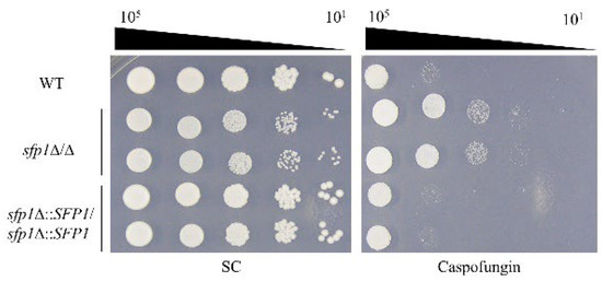 3.2. The SFP1-Deletion Mutant Has Increased Resistance to Caspofungin