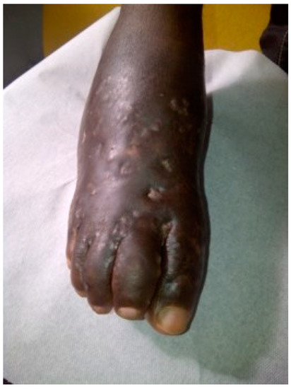 - Develoux, M.; Audoin, J.; Treguer, J.; Vetter, J.M.; Warter, A.; Cenac, A. Mycetoma in the Republic of Niger: Clinical features and epidemiology. Am. J. Trop. Med. Hyg. 1988, 38, 386–390. [Google Scholar] [CrossRef] [PubMed]