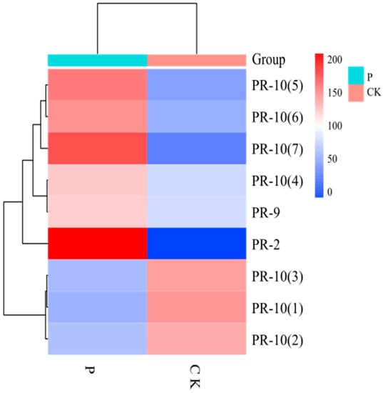 Clustering of pathogenesis-related proteins expression. The depth of color indicates how much different proteins are expressed in the sample.