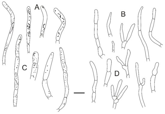- Li, G.J.; Hyde, K.D.; Zhao, R.L.; Hongsanan, S.; Abdel-Aziz, F.A.; Abdel-Wahab, M.A.; Alvarado, P.; Alves-Silva, G.; Ammirati, J.F.; Ariyawansa, H.A.; et al. Fungal diversity notes 253–366: Taxonomic and phylogenetic contributions to fungal taxa. Fungal Divers. 2016, 78, 1–237. [Google Scholar] [CrossRef]