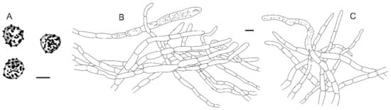 - Hyde, K.D.; Tennakoon, D.S.; Jeewon, R.; Bhat, D.J.; Maharachchikumbura, S.S.N.; Rossi, W.; Leonardi, M.; Lee, H.B.; Mun, H.Y.; Houbraken, J.; et al. Fungal diversity notes 1036–1150: Taxonomic and phylogenetic contributions on genera and species of fungal taxa. Fungal Divers. 2019, 96, 1–242. [Google Scholar] [CrossRef]