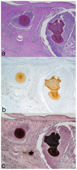 - West, K.L.; Proia, A.D.; Puri, P.K. Fontana-Masson Stain in Fungal Infections. J. Am. Acad. Dermatol. 2017, 77, 1119–1125. [Google Scholar] [CrossRef]