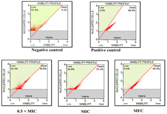 - Lone, S.A.; Wani, M.Y.; Fru, P.; Ahmad, A. Cellular apoptosis and necrosis as therapeutic targets for novel eugenol tosylate congeners against Candida albicans. Sci. Rep. 2020, 10, 1191. [Google Scholar] [CrossRef] [PubMed]