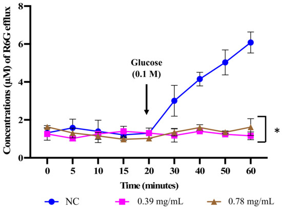 2.9. Investigating the Effect of D-lp1 on Efflux Assay