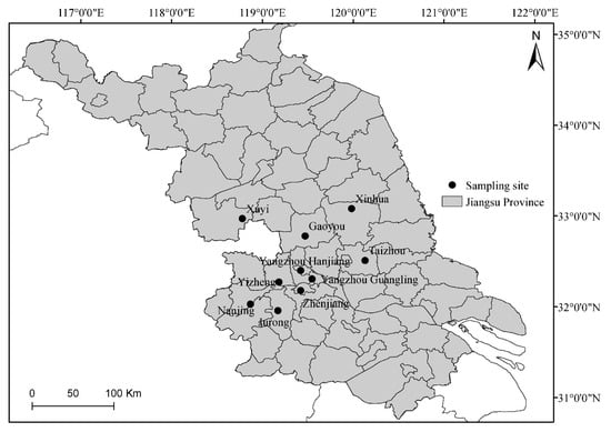 Geographic origins of Ustilaginoidea virens isolates collected in Jiangsu Province of East China.