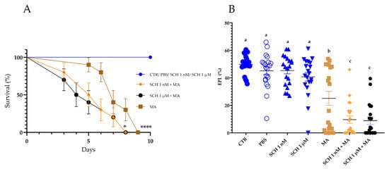 - Corrêa, T.A.; Fiorotti, J.; Mesquita, E.; Meirelles, L.N.; Camargo, M.G.; Coutinho-Rodrigues, C.J.B.; Marciano, A.F.; Bittencourt, V.R.E.P.; Gôlo, P.S. How Dopamine Influences Survival and Cellular Immune Response of Rhipicephalus microplus Inoculated with Metarhizium anisopliae. J. Fungi 2021, 7, 950. [Google Scholar] [CrossRef]