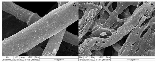 Effect of crude metabolite of Trichoderma asperelloides PSU-P1 treated muskmelon: (A) Stagonosporopsis cucurbitacearum hyphae treated with PDB (control), and (B) S. cucurbitacearum hyphae treated with a crude metabolite of T. asperelloides PSU-P1 observed by scanning electron microscope (SEM).
