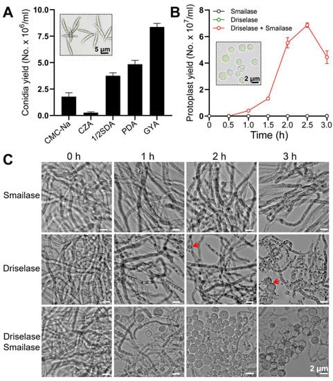 - Xu, J.; Li, J.; Lin, L.; Liu, Q.; Sun, W.; Huang, B.; Tian, C. Development of genetic tools for Myceliophthora thermophila. BMC Biotechnol. 2015, 15, 35. [Google Scholar] [CrossRef]