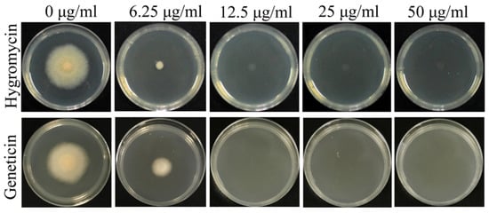 - Fang, W.; Zhang, Y.; Yang, X.; Zheng, X.; Duan, H.; Li, Y.; Pei, Y. Agrobacterium tumefaciens-mediated transformation of Beauveria bassiana using an herbicide resistance gene as a selection marker. J. Invertebr. Pathol. 2004, 85, 18–24. [Google Scholar] [CrossRef]