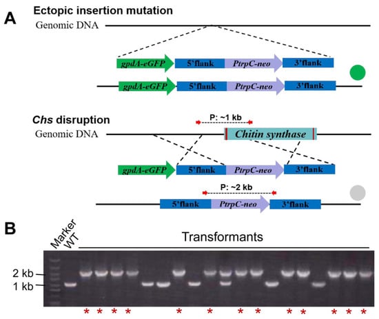 - Fungaro, M.H.; Rech, E.G.; Muhlen, G.; Vainstein, M.H.; Pascon, R.C.; Queiroz, M.; Pizzirani-Kleiner, A.A.; Azevedo, J.L. Transformation of Aspergillus nidulans by microprojectile bombardment on intact conidia. FEMS Microbiol. Lett. 2010, 125, 293–297. [Google Scholar] [CrossRef][Green Version]