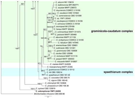 - Zheng, H.; Yu, Z.; Jiang, X.; Fang, L.; Qiao, M. Endophytic Colletotrichum Species from Aquatic Plants in Southwest China. J. Fungi 2022, 8, 87. [Google Scholar] [CrossRef] [PubMed]