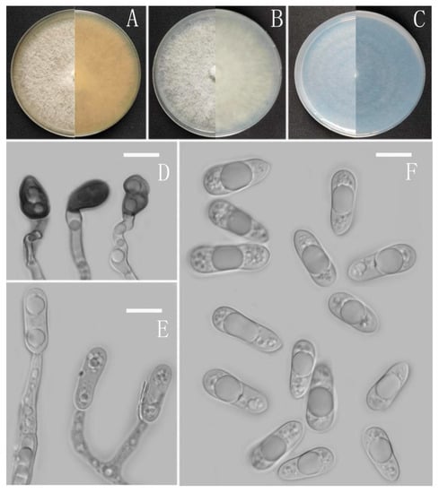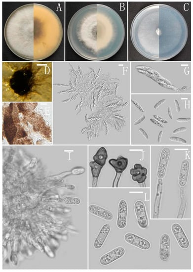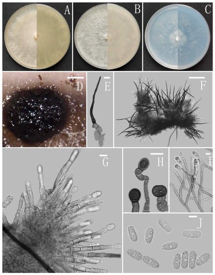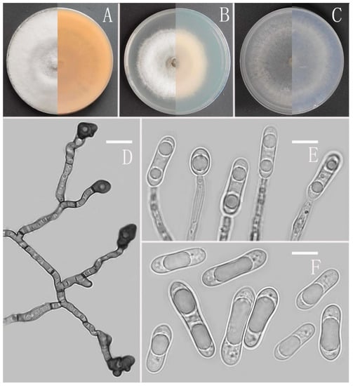 - Marin-Felix, Y.; Groenewald, J.Z.; Cai, L.; Chen, Q.; Marincowitz, S.; Barnes, I.; Bensch, K.; Braun, U.; Camporesi, E.; Damm, U.; et al. Genera of phytopathogenic fungi: GOPHY 1. Stud. Mycol. 2017, 86, 99–216. [Google Scholar] [CrossRef] [PubMed]