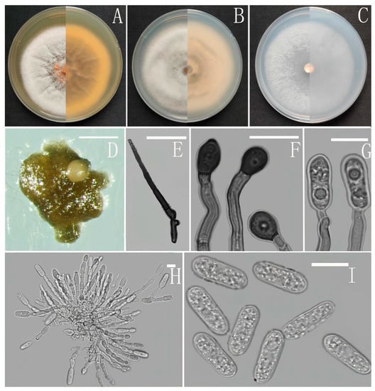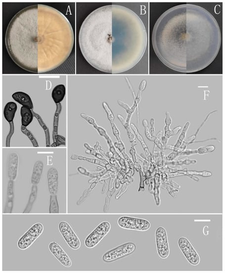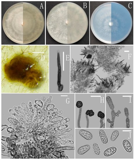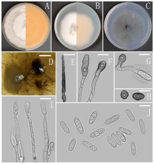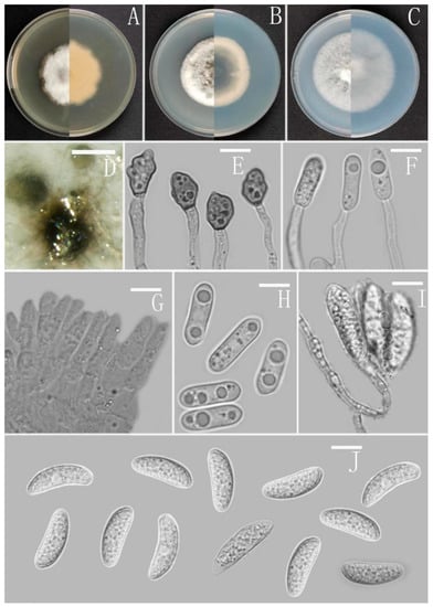 - Jayawardena, R.S.; Hyde, K.D.; Chen, Y.J.; Papp, V.; Palla, B.; Papp, D.; Bhunjun, C.S.; Hurdeal, V.G.; Senwanna, C.; Manawasinghe, I.S.; et al. One stop shop IV: Taxonomic update with molecular phylogeny for important phytopathogenic genera: 76-100 (2020). Fungal Divers. 2020, 103, 87–218. [Google Scholar] [CrossRef]