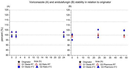 Thus, we set out to investigate stability as well as the activity and efficacy of antimycotic generics and innovator of voriconazole and anidulafungin against clinical fungal isolates in vitro.