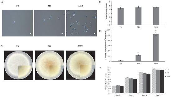 We also performed a qRT-PCR analysis to verify the RNA-seq data for the upregulated genes (EVM0005624 and EVM0009704) related to conidia production. Both of these genes were not detected in the M0 samples, suggesting they were specifically expressed in the MS0 samples, which affected spore production to some extent.