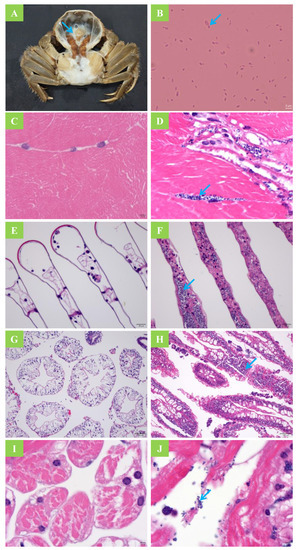 - Wang, G.L.; Shan, J.; Chen, Y.E.; Li, Z. Study on pathogens and pathogenesis of emulsification disease of Portunus trituberculatus. Adv. Mar. Sci. 2006, 24, 526–531. [Google Scholar]