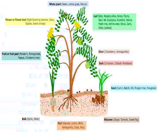 Synthetic pesticides have long been used to effectively manage plant diseases. However, their prolonged and persistent use has resulted in many detrimental and unprecedented effects on the surrounding environment. Pesticide misuse has resulted in many phytopathogens becoming resistant []. Pesticides’ bioaccumulation and toxicity to non-target organisms have also had negative environmental repercussions []. Synthetic pesticides cause nearly two lakhs of deaths from poisoning each year, and 99% of them occur in developing countries []. Although synthetic pesticides are sometimes more convenient, biopesticides derived from natural resources are a superior option. This last decade has seen the various botanicals becoming increasingly prominent in the field of plant protection.