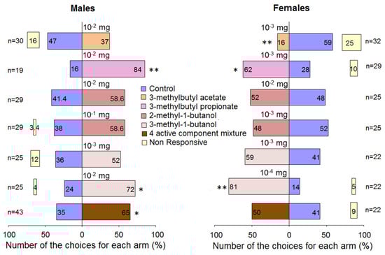- Scheidler, N.H.; Liu, C.; Hamby, K.A.; Zalom, F.G.; Syed, Z. Volatile codes: Correlation of olfactory signals and reception in Drosophila-yeast chemical communication. Sci. Rep. 2015, 5, 14059. [Google Scholar] [CrossRef] [Green Version]