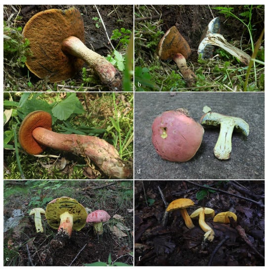 - Liu, H.Y. Taxonomy and Resource Evaluation of Boletes in Northeastern China. Master’s Thesis, Jilin Agricultural University, Changchun, China, 2020. [Google Scholar]