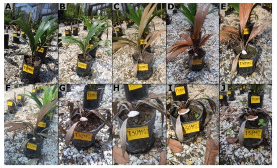 - Breton, F.; Hasan, Y.; Lubis, Z.; De Franqueville, H. Characterization of parameters for the development of an early screening test for basal stem rot tolerance in oil palm progenies. J. Oil Palm Res. 2006, 2006, 24–36. [Google Scholar]