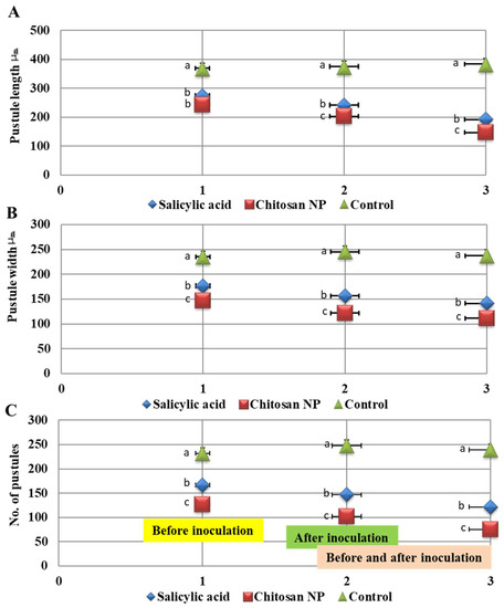 3.3. Effect of Chitosan Nanoparticles and Salicylic acid on Pustules Size and Receptivity