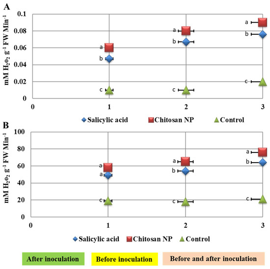 3.5. Effect of Chitosan Nanoparticles and Salicylic Acid Treatments on Enzyme Activities