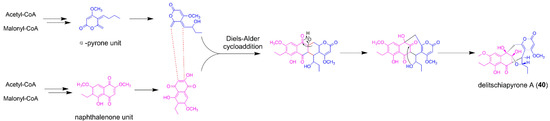 The proposed biosynthetic pathway of delitschiapyrone A (40).