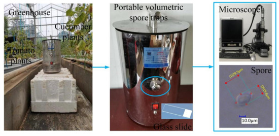 This research mainly focused on the spores of three pathogens. However, there may be other biological and non-biological particles in greenhouses. In addition, in this study, the collection of pathogenic spores needed the assistance of a portable spore trap. Although the portable spore trap can catch spores, it cannot separate and enrich pathogenic spores. Therefore, it is suggested that in the future, more research on the influence of biological and non-biological particles on the experiment, as well as the separation and enrichment methods of spores be considered.
