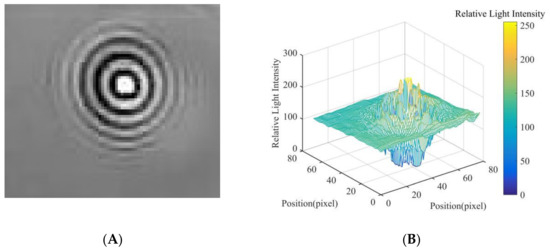 The diffraction imaging system in this research was designed according to the Huygens–Fresnel principle. Diffraction images satisfy the relationship between Fourier transform and inverse transform. The complex amplitude of point P on the diffraction image can be expressed as [31]: