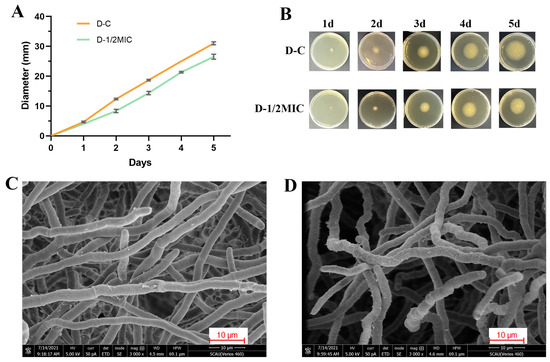 3.3. Effect of 2−CDs on the Growth and Morphology of P. italicum