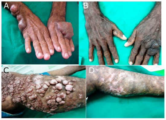 - Florian, M.C.; Rodrigues, A.; de Mendonça, S.B.M.; Colombo, A.L.; Tomimori, J. Epidemiologic and clinical progression of lobomycosis among Kaiabi Indians, Brazil, 1965–2019. Emerg. Infect. Dis. 2020, 26, 930–936. [Google Scholar] [CrossRef]