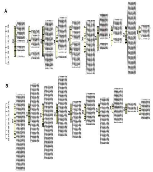 Location of the unique genes found within each of the two monokaryons on each chromosome. (A) Unique genes in strain SP3. (B) Unique genes in strain SP30.