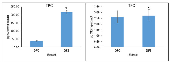 Effects of culture medium supplementation on TPC and TFC in DFC and DFS. Values given are means ± SD, with n = 6. * Significantly different from DFC.