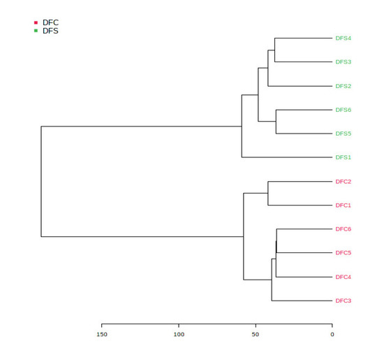 HCA plot showed as dendrogram in unsupervised analysis for DFC and DFS corresponding to the PCA model.
